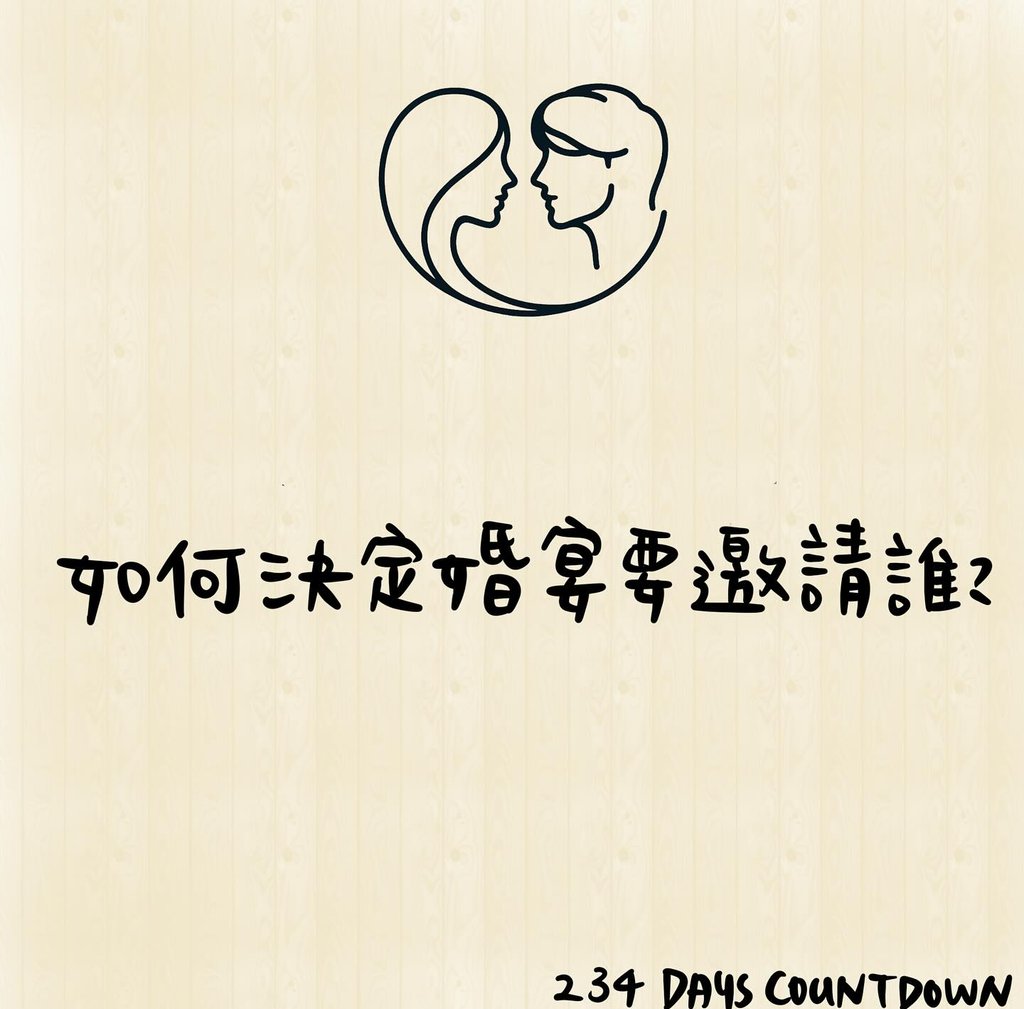 以我跟GYB為例,我們一開始就決定要往小家宴的方向處理,就可以先行將職場從邀請範圍中刪除;再以最最最貼近自身的親友大致人數為基礎(不請可能會出大事的那種),進一步抓取了婚宴桌數,並在這個數量限制下分配及決定最終邀請的賓客對象。