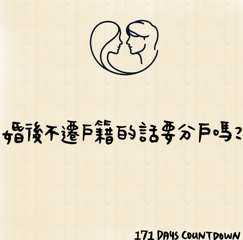 因此我認為,分戶其實有許多優點,結婚就是一個還不錯進行分戶的時間點(畢竟都要去戶政)。當然,如果長輩真的反彈很大,也可以等到真的有必要分戶的時候再辦理。