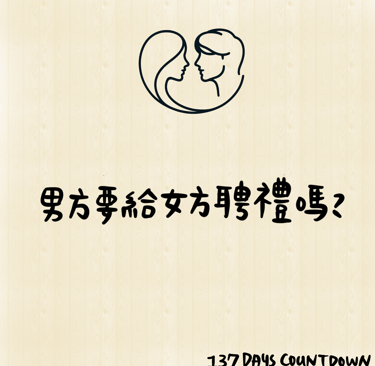 與「喜餅可不可以給男方親友?」相同的立場,我認為聘禮並不是必要的,省去聘禮不僅能降低男方(家)的負擔,雙方也不會因為聘禮爭執,女方(家)也不會「損失」或「賣」一個女兒。