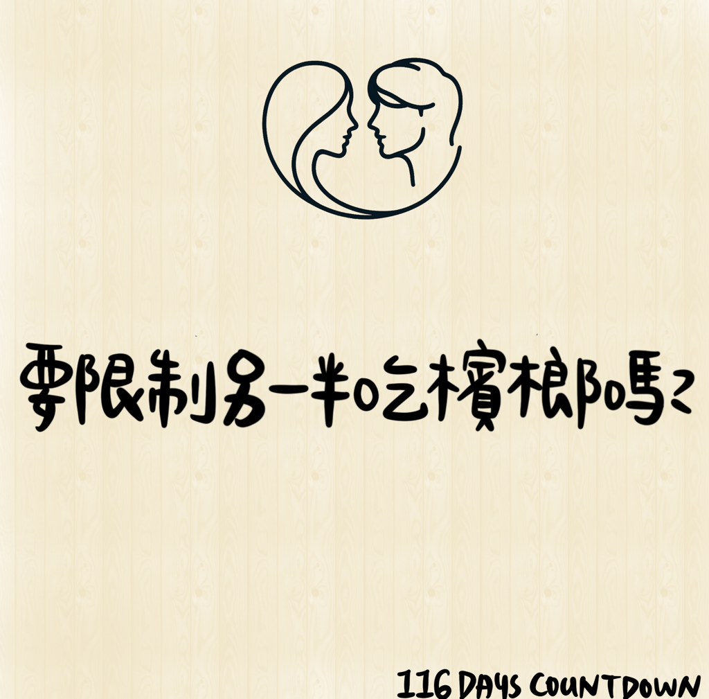 這題與「要限制另一半喝酒嗎?」、「要限制另一半抽菸嗎?」的邏輯類似,雖然檳榔已被證實對健康有害,但在不影響他人的情況下,自己的身體自己顧,伴侶基本上無須限制。
