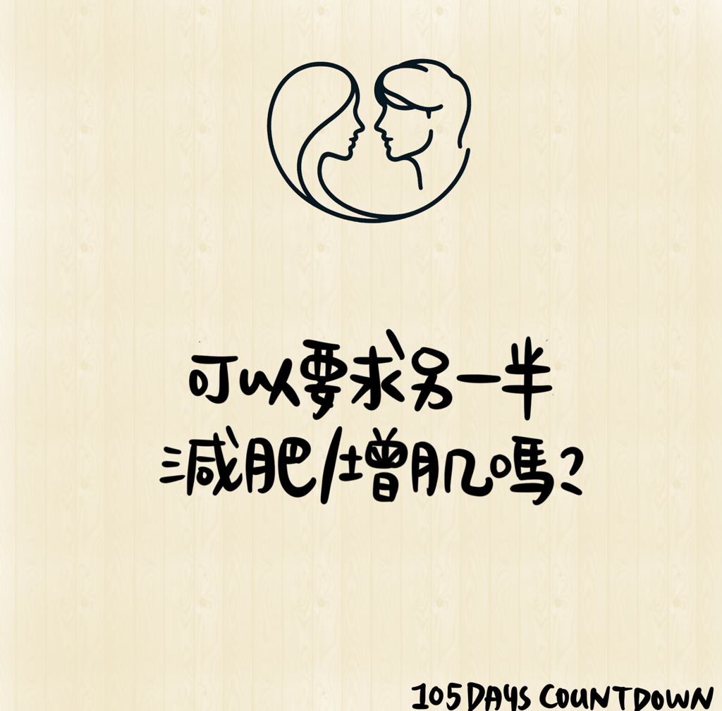 因此我認為,與其「要求」另一伴減肥/增肌,不如先從自己做起,讓另一伴自己默默發覺並跟上。如果另一伴一直無動於衷,那或許還有其他的無形障礙吧,這就必須慢慢觀察了,畢竟生理健康雖然重要,但心理健康也是同等值得關注的事情。