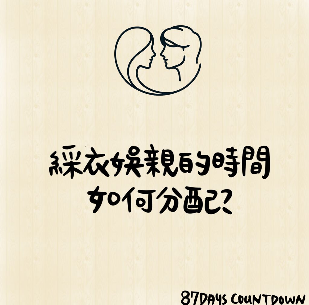 以我們自己的狀況為例,因為我們目前並沒有小孩,週間白天也需要工作,因此能分配的時間大概只有週間晚上跟週休二日。我們通常週五晚上會各自回原生家過夜,週間晚上有一天或兩天去某一方家或跟某一方的家人吃飯。但我相信隨著時間推移與體力的變化,這個時間跟頻率也會不斷改變。