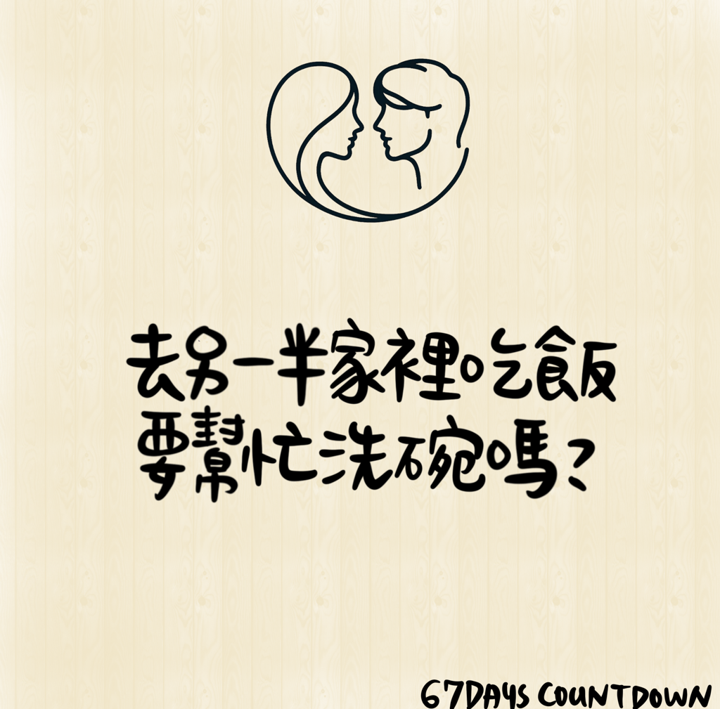 跟去別人家作客的時候一樣,都會面臨要不要幫忙收拾洗碗的問題,只不過婚前是男女朋友的身份,婚後變成女婿/媳婦的身份。