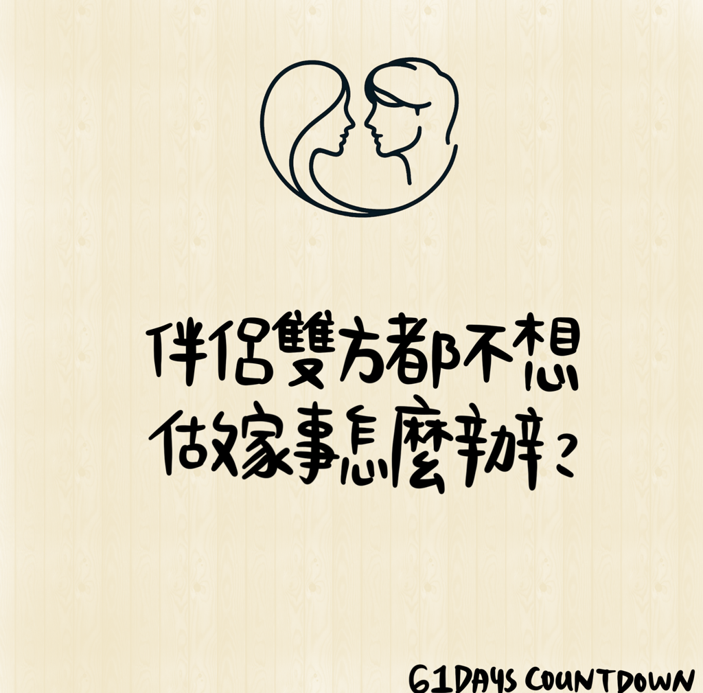 當然,前述的做法是在伴侶雙方突發性、短暫性的不想做家事的前提之下才有成立的可能。但如果伴侶雙方都是習慣性家務擺爛的狀態,那麼我想這段關係如果能走的長久,約莫只有兩種可能:1.有足夠的經濟能力長久課金將家務委外,或有人願意長期無償協助處理家務;2.伴侶雙方都對於沒有人做家務的生活具有高度的耐受(耐髒)性。