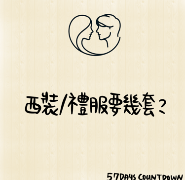 一般新郎的西裝大概都是兩套,有的甚至只有一套。一套的好處是不需要花時間換裝,但為了可以配合新娘的禮服或婚紗,大概只能挑選黑色或深藍色這種百搭的顏色;兩套就可以有多一點變化,也可以讓婚攝看起來沒那麼無聊。我自己就是選擇二套。當然,如果預算與時間足夠,想要三套也沒問題,單純個人選擇。