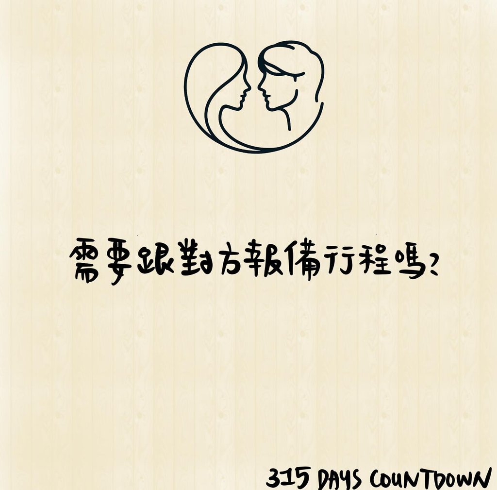 以我跟KK為例,如果是要邀請對方一起參加的行程,當然需要跟對方說;但如果是一方單獨跟親朋好友的聚會、聚餐,我們通常還是會先跟對方說一下,一來是讓對方放心,二來也是讓對方知道如何安排這段時間。