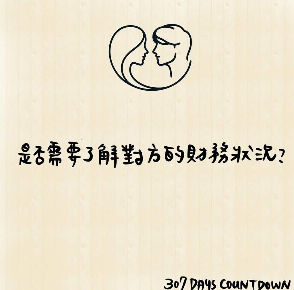簡單來說,如果伴侶雙方沒有特別約定改採「分別財產制」(即不管是婚前還是婚後,財產都是你的就是你的,我的就是我的),那麼雙方結婚後的財產及各種生活費用的負擔,或多或少都會有共享、共同承擔的色彩存在,所以我個人認為是有相互了解資產負債大致情形的必要性的。