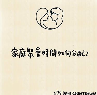 這題承接「可接受的家庭聚會頻繁度?」,這次著重在第二層次,也就是分配問題。與前一題不同的是,這個問題容易發生在雙方家庭聚會都很頻繁的情況,偶爾也會出現在一方多另一方少的情況。簡單來說,因為時間有限,如何分配參加各自原生家庭的聚會,就是一個需要思考的問題。