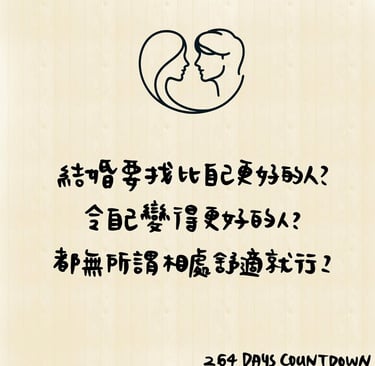 結婚要找比自己更好的人?令自己變得更好的人?都無所謂相處舒適就行?